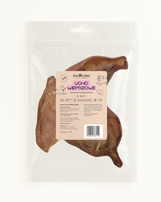 Naturalne suszone ucho wieprzowe – chrupiący gryzak wspierający higienę jamy ustnej, redukcję stresu, dostarczający wartości odżywcze. 100% natury, bez sztucznych dodatków, odpowiedni dla psów wszystkich ras i w każdym wieku.